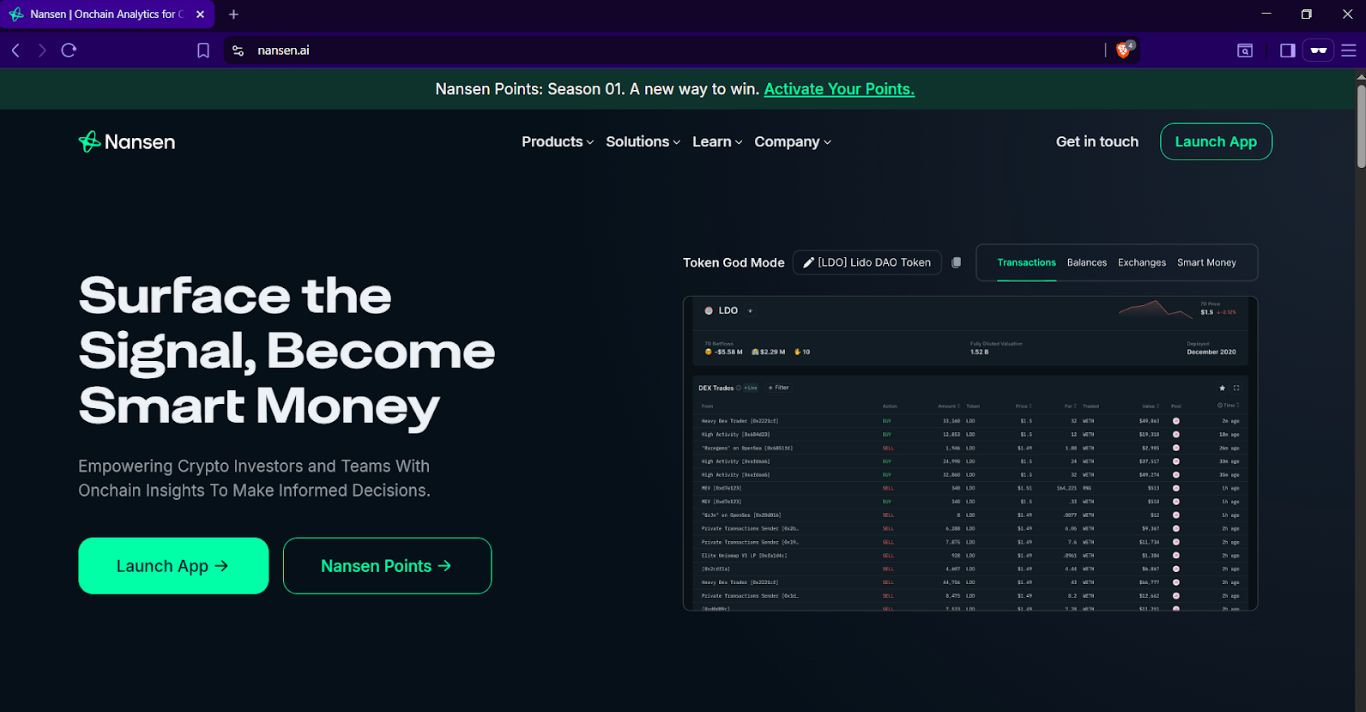 Nansen 因其钱包标签系统与聪明资金分析而广受欢迎。其 API 提供巨鲸追踪与资金流分析,帮助交易者预判大资金的动向。
