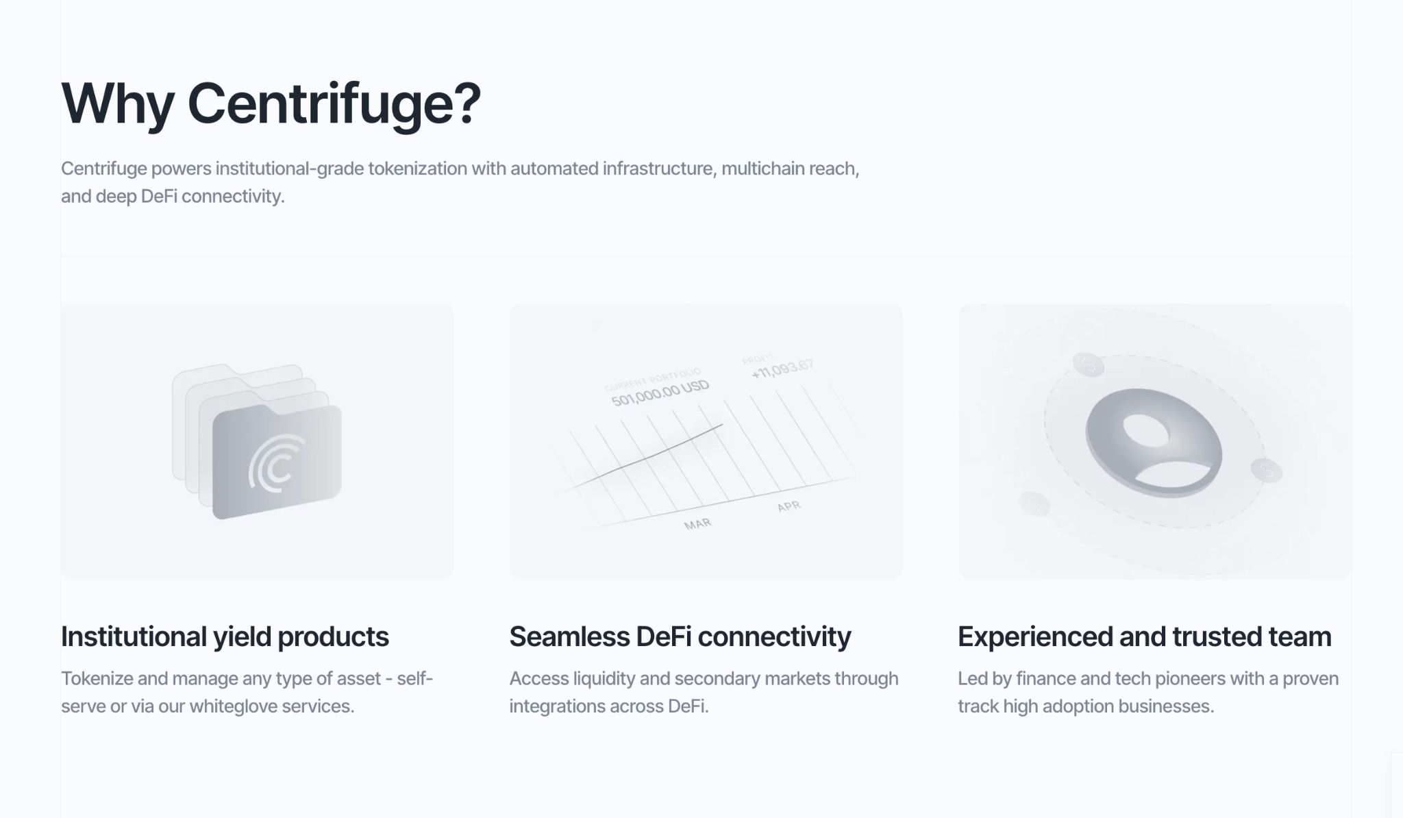 - DeFi 借贷和收益:Centrifuge 池作为 DeFi 协议的收益生成工具(历史上与 MakerDAO、Aave 等集成)