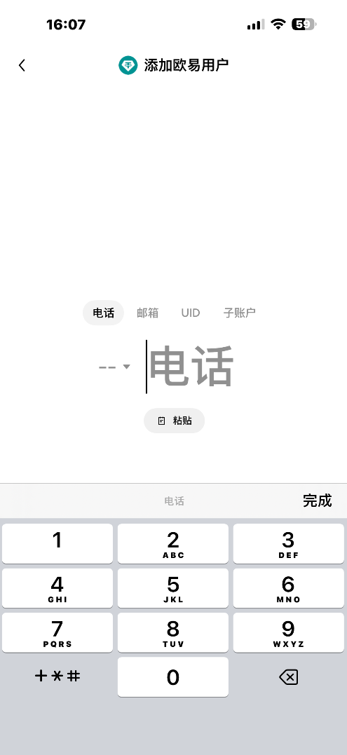 8.直接输入对方的电话、邮箱、UID或子账户添加用户即可,这样欧易用户的白名单就设置好了。