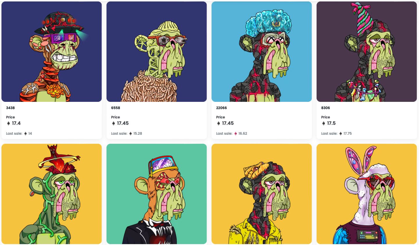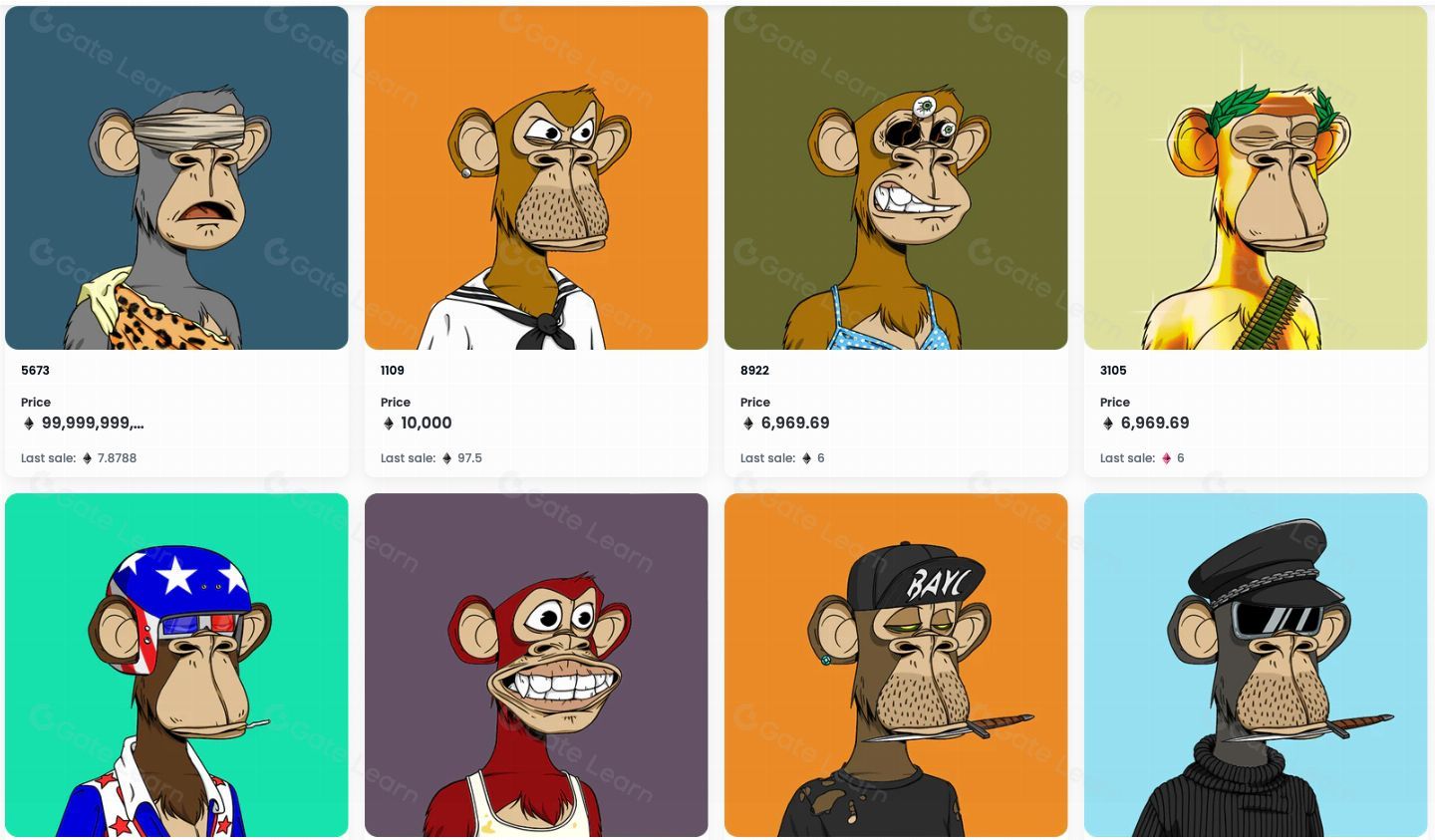 之所以会选定猿猴 (Ape) 作为创作对象,则是因为币圈中人们往往揶揄说自己是猿猴,在交易时做出各种不理性的行为。以太坊区块链上总共有 1 万只猿猴 NFT 作品,每只猿猴都有独特的外观、画风、以及稀有度。无聊猿的持有人可以参加 BAYC 的专属俱乐部和活动,因其知名度也有其他项目团队的邀约或赞助。