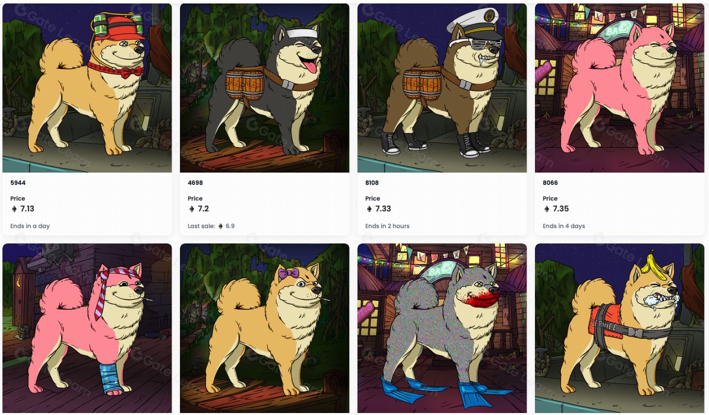 和无聊猿一样,这些狗狗 NFT 都具备不同的属性和稀有度,最终有将近 400 只没有被认养,发行的 BAKC 数量为 9602 只。链上买卖 BAKC 的总金额中,有收取 2.5% 的版税,将由 Yuga Labs 捐赠给流浪狗照护慈善机构。
