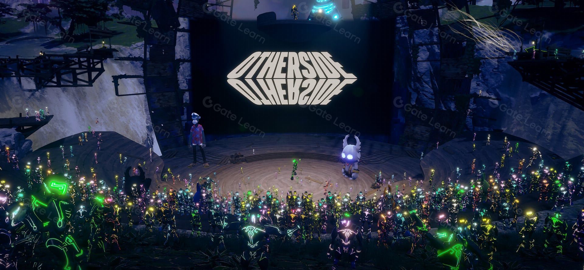 The Other Side 是由 Yuga Labs 和元宇宙技术公司 Improbable 共同合作打造的元宇宙游戏平台,使用被称为 M² 网络的技术开发,可以支持超过 1 万名玩家聚集在相同场景,不仅每一位玩家都能有独立的角色外观,并且提供身历其境的环场音效及光影呈现,不会产生任何的延迟或是卡顿情况。