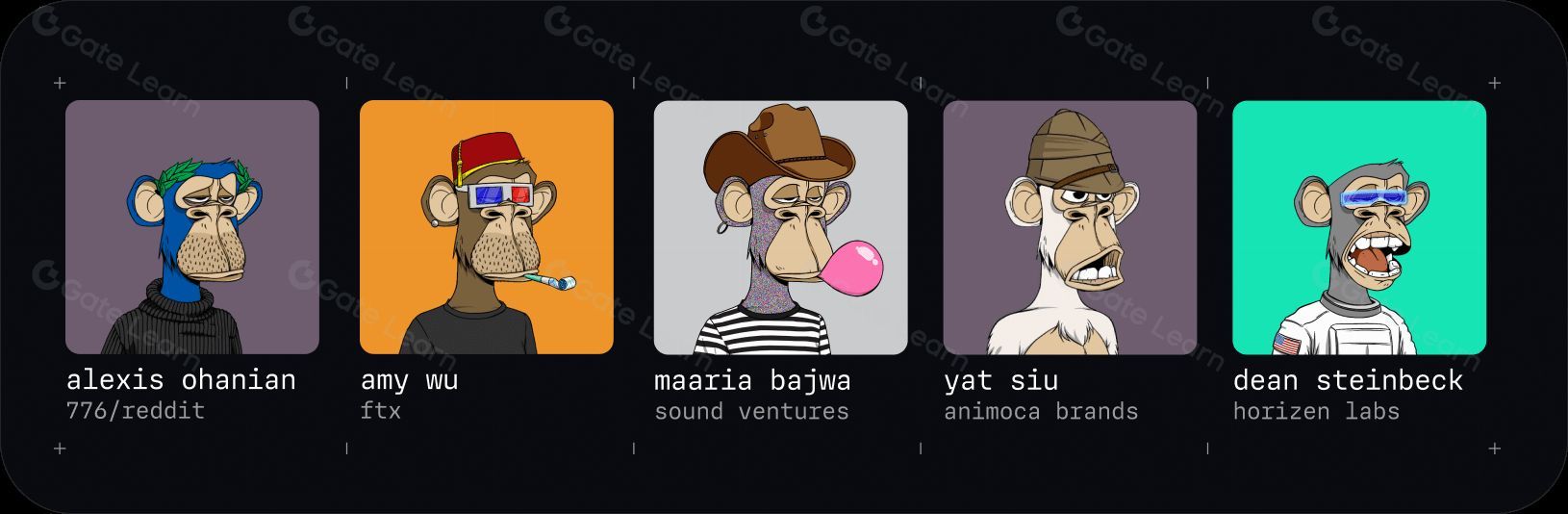 Yuga Labs 是一间著名的 NFT 创作及行销公司,由 Gargamel 和 Gordon Goner (两人都采用了化名) 创立。在两人合伙前,Gargamel 是一名作家和编辑,Goner 原本计划就读艺术硕士,因生病缘故转而从事加密货币交易。