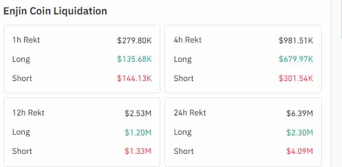 24小时内,Enjin Coin的总清算金额高达639万美元。细分数据揭示了真相: