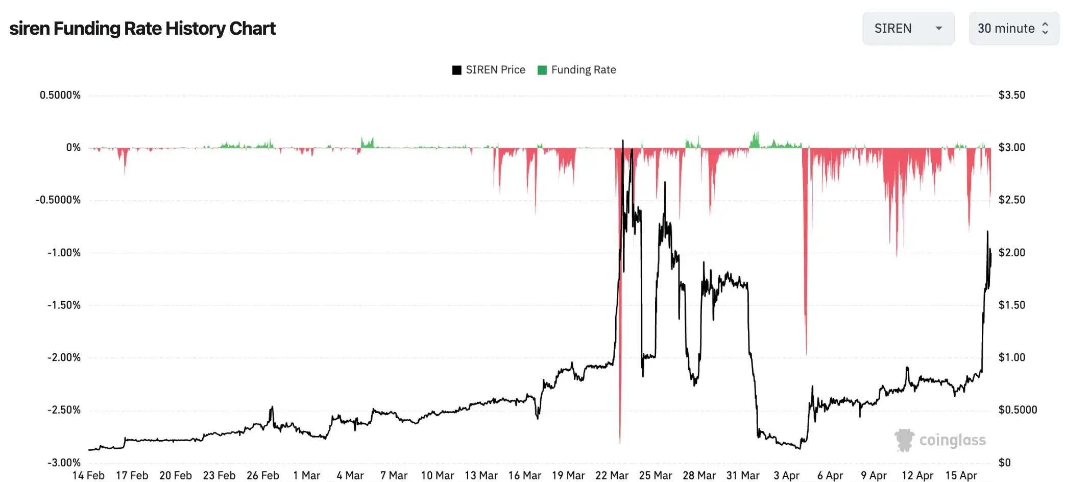 SIREN 在价格快速拉升期间,资金费率触及-0.2989%/每 8 小时,年化约-328%。翻译一下就是,做空 SIREN 并持有头寸,每 8 小时需向多头支付本金约 0.3% 的资金费用。持仓一个月,这笔费用本身就能吞噬本金的 25% 以上,还没算价格上涨带来的账面损失。