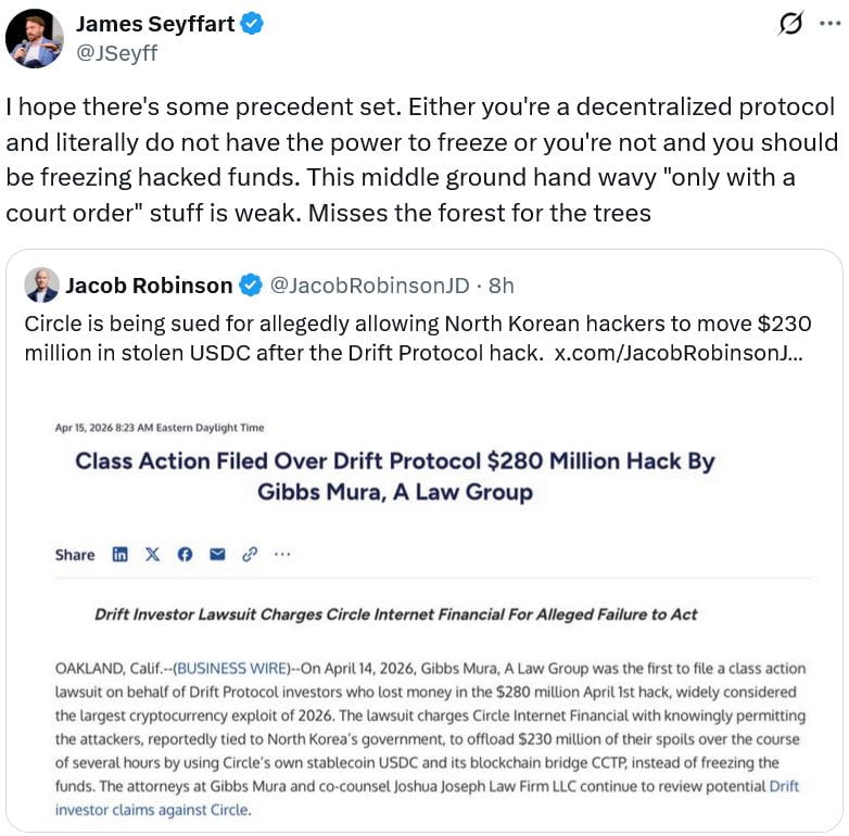 稳定币发行商 Circle 因 Drift Protocol 被黑客攻击而面临 2.8 亿美元的诉讼