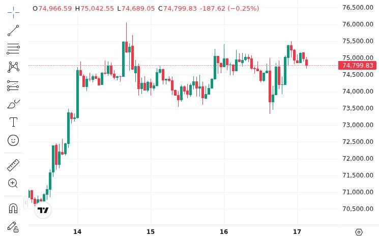 比特币价格稳定在 74,700 美元附近,嘉信理财 (Schwab) 进入市场