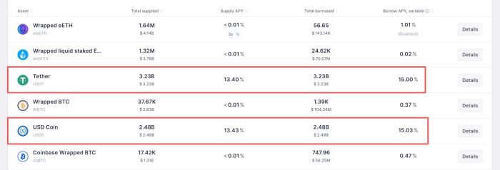 黑客攻击事件之后,Aave 平台数据显示,USDT 借款 APY 一度暴涨至 14.99%,存款 APY 暴涨至 13.39%。