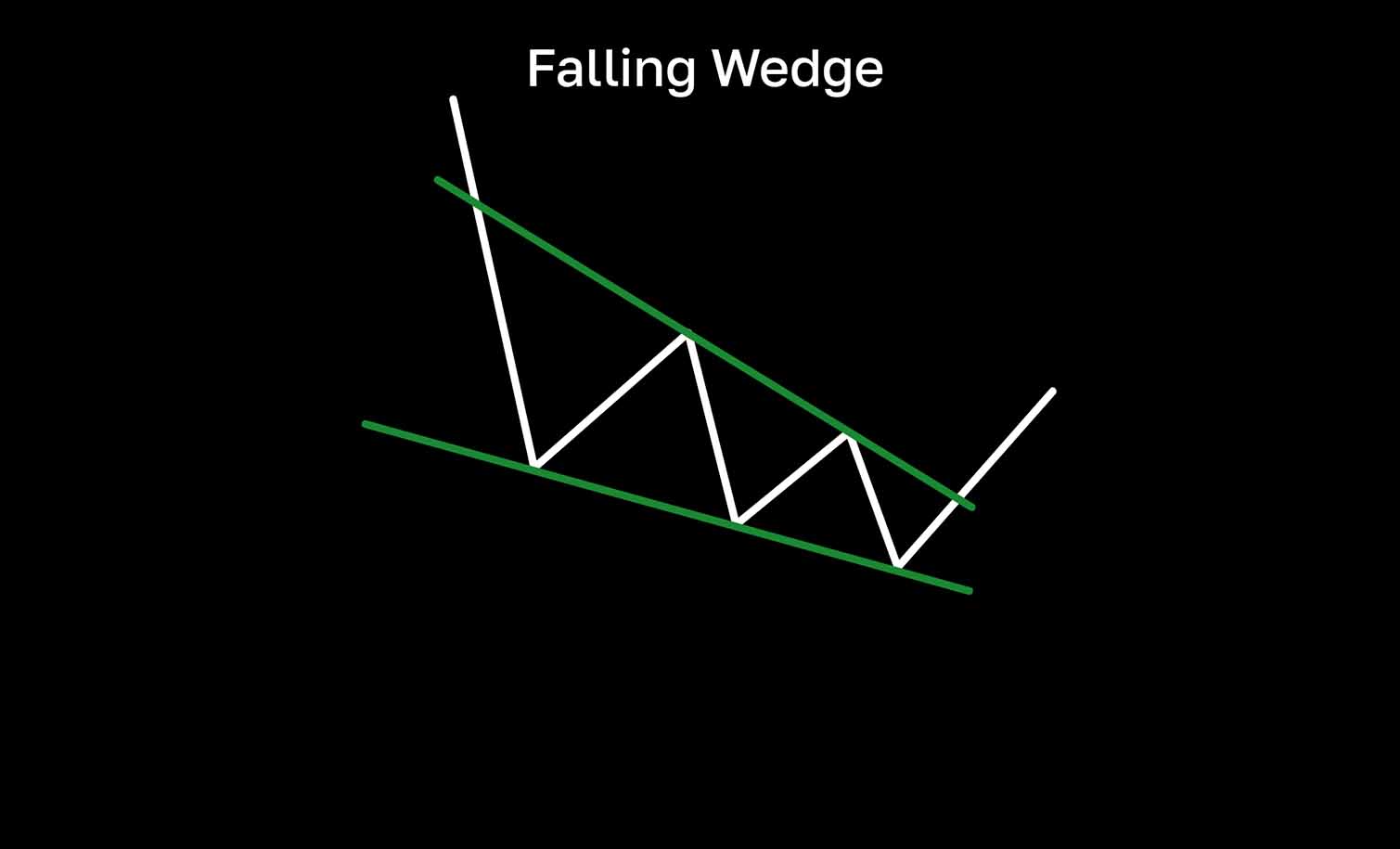“下降楔形”形态是图表上的看涨反转形态。它看起来像一个收窄的三角形,连接局部低点和高点的趋势线向下汇聚形成楔形。