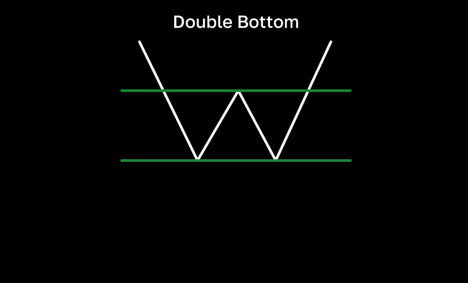 “双底”形态表明从下降趋势到上升趋势的潜在趋势反转。它由两个大致位于同一价格水平的局部低点组成,中间有短期反弹。它们之间的局部峰值形成一条阻力线,也称为颈线。