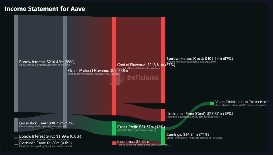 DefiLlama 目前已经为许多协议发布了完整的收入报表。这些报表基于链上数据自动更新,将收入分解为不同项目,并以标准会计语言重新定义这些指标。