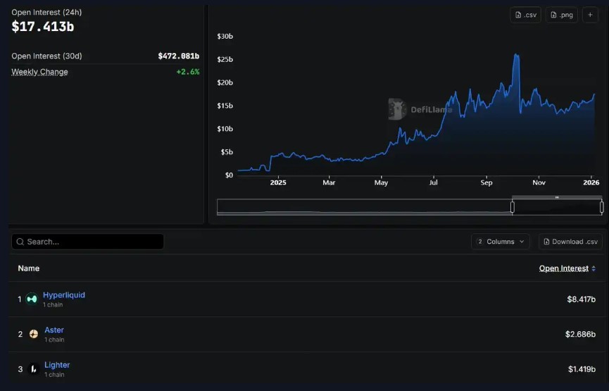 未平仓合约(Open Interest)是衡量衍生品平台流动性的重要指标。它反映了当前活跃的永续合约头寸中部署的总资本量。