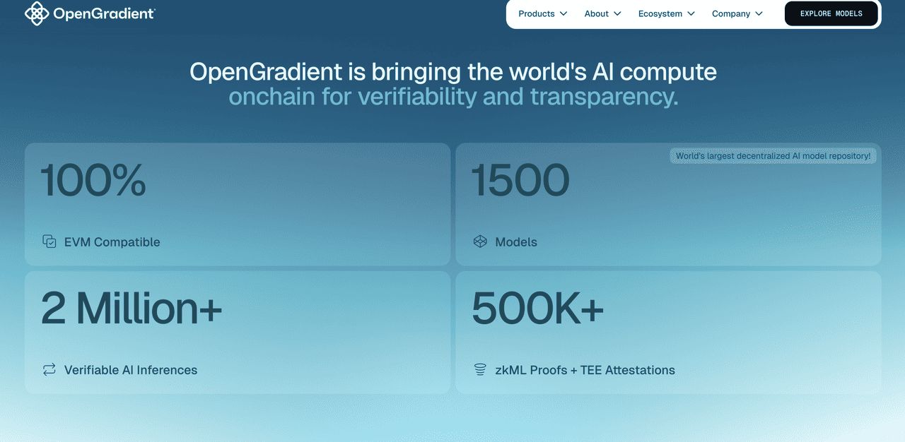 OpenGradient 于2024年10月从隐身模式中公开亮相,于2024年10月完成种子轮融资,宣布总融资额为950万美元。测试网于2024年第四季度向开发者开放,主网活动和代币生成事件(TGE)进展到2026年。该网络作为EVM兼容层运行,最初在Base上部署元素,并强调异构架构以克服传统区块链VM限制和AI托管的高成本。