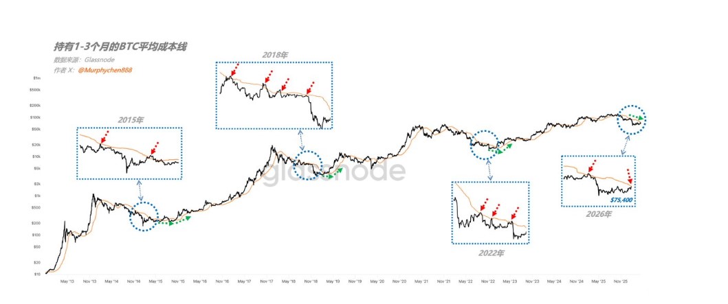 在过去的几轮周期中,通过成本基础和价格行为的关系变化,是观察BTC走出底部结构的最佳视角之一。