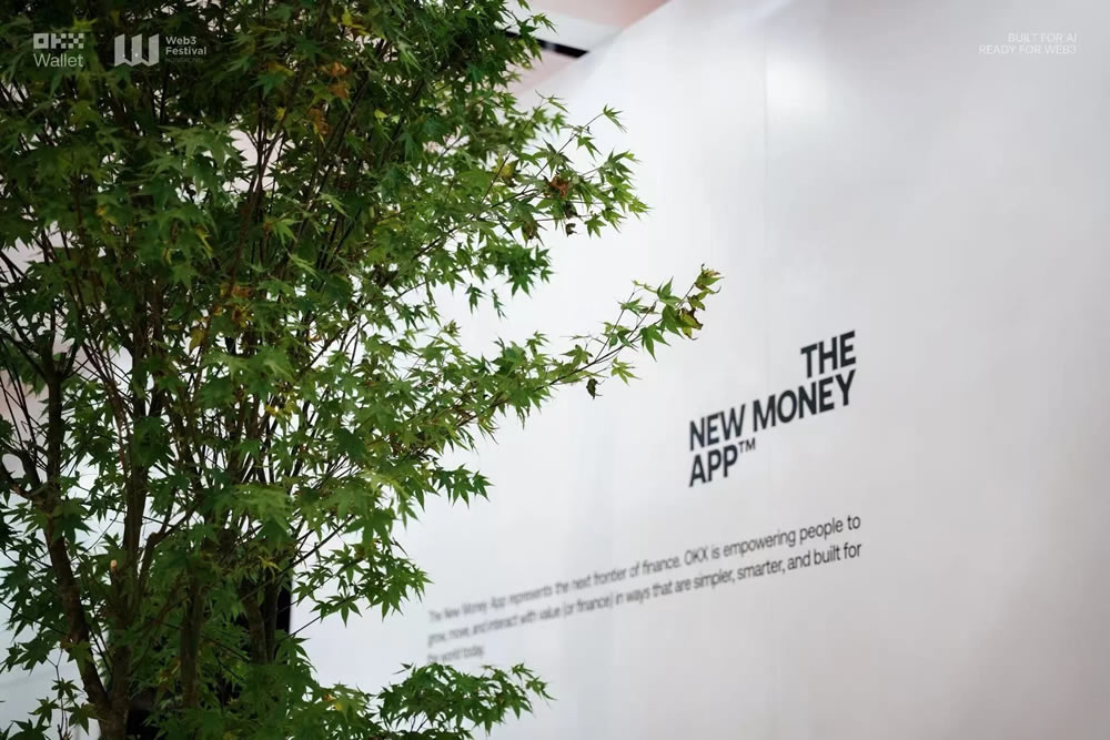 穿过人潮涌动的展区入口,OKX Wallet 展台以极具辨识度的未来科技风格率先映入眼帘。整体空间以白色为主基调,融入绿植元素点缀,在冷静有序的视觉体系中注入自然生机,营造出兼具未来感与生态理念的沉浸式场景,让“链上世界”从概念走向可感知的现实。