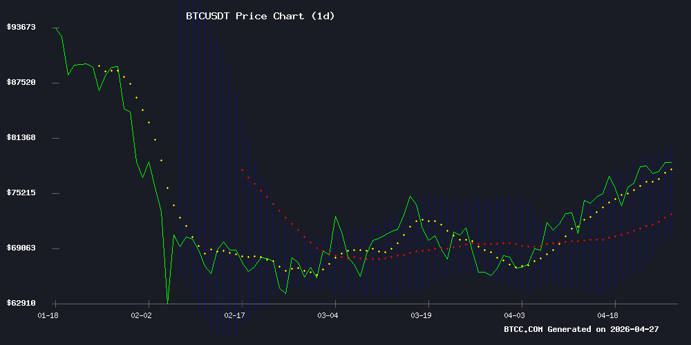 截至 2026 年 4 月 27 日,比特币处于高位震荡、中性偏多状态:价格约7.8–7.9 万美元,在7.5–8.0 万区间整理,机构 ETF 持续净流入但动能放缓,多空在 8 万关口博弈激烈,…