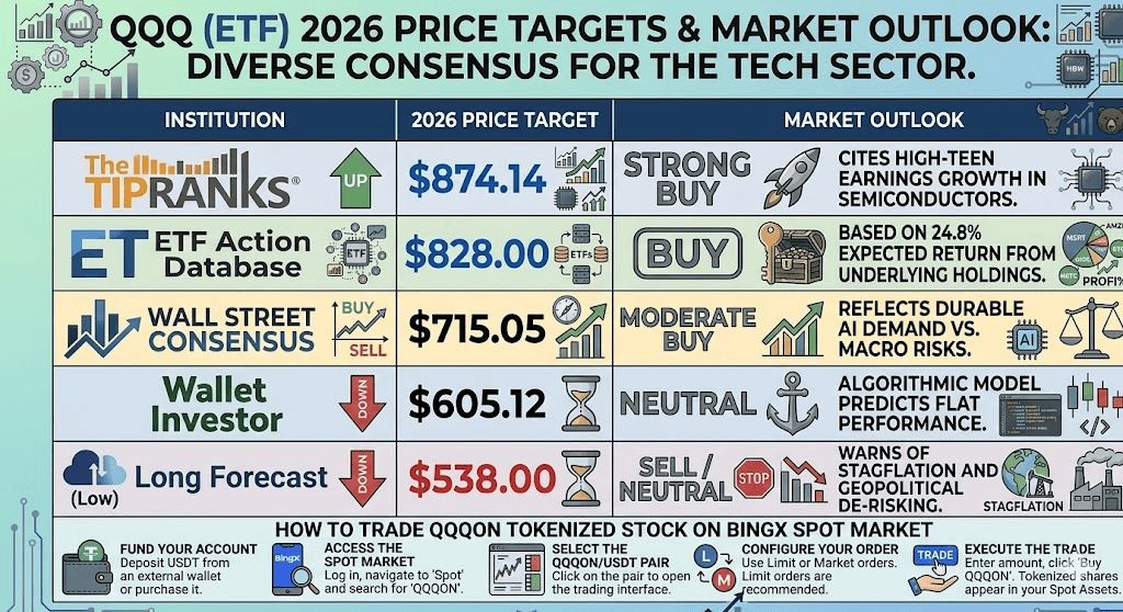 本指南使用来自FactSet、TipRanks和Invesco的数据分析QQQ 2026年价格预测。