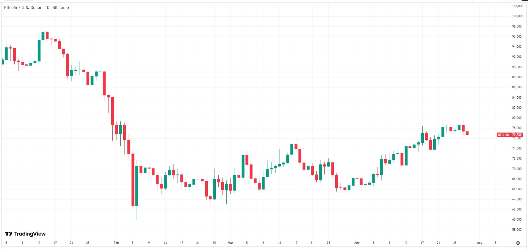4月23日,比特币报价7.8万美元附近,昨日已升破7.9万美元,创下今年2月以来新高,ETH 则仍在2400美元上下震荡,部分山寨币大幅拉升,那么比特币将开启8万美元轧空战吗?本文…