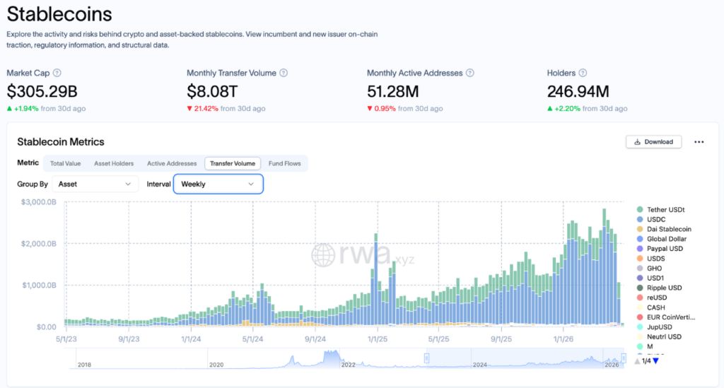 稳定币交易量骤降 19%,持有者和供应量仍在增长:意味着什么?
