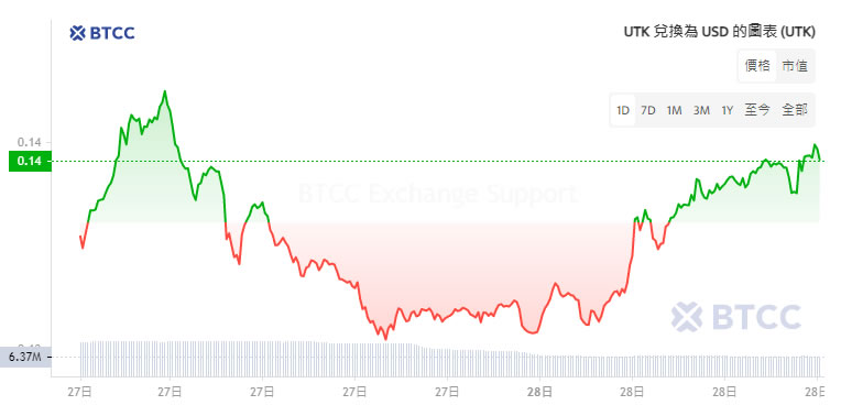 截止3 月20 日,UTK 的交易价格为$0.1042,在过去24 小时下跌了5.89% ,在过去一个月上涨了21.95%,最高达到$0.1309。