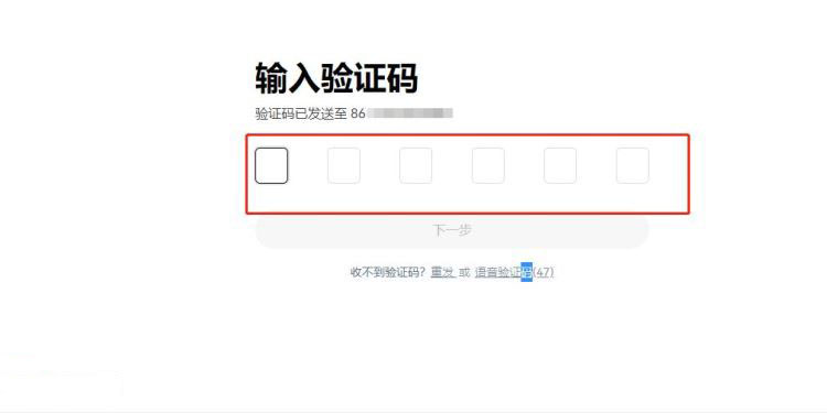 3、填入手机验证码