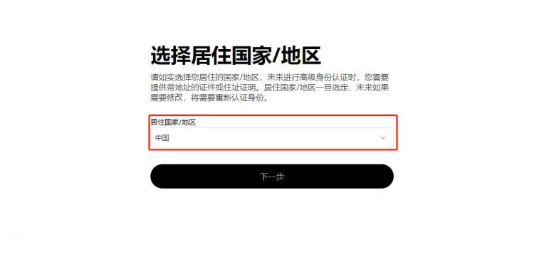 4、选择居住国家/地区,点击【下一步】