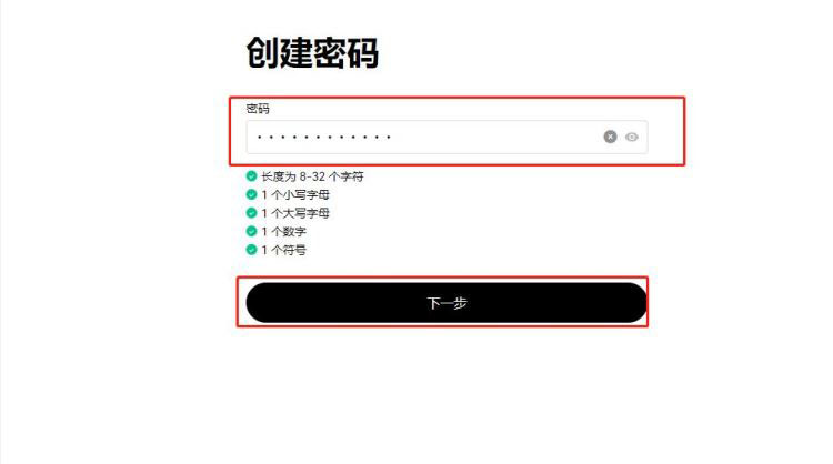 5、设置符合要求的密码,点击【下一步】,即可完成账户创建