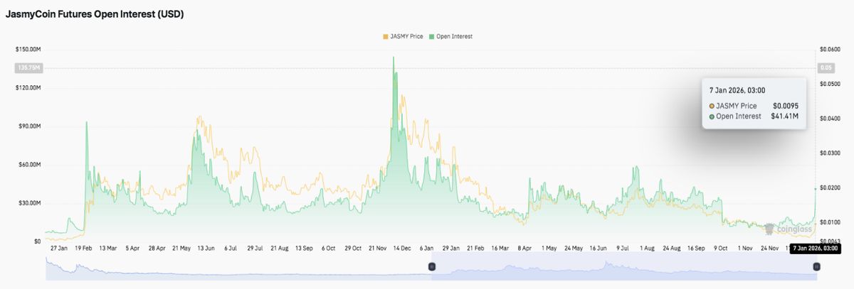 JasmyCoin价格预测:随着期货兴趣缓慢回升,JASMY趋势保持积极态势。2026.1.9