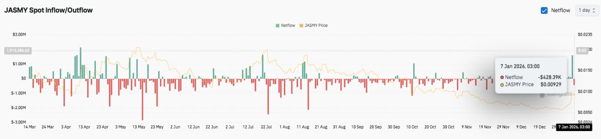 - JASMY 在关键斐波那契支撑位上方维持更高的低点,表明市场处于盘整阶段而非疲软阶段。