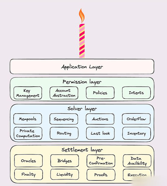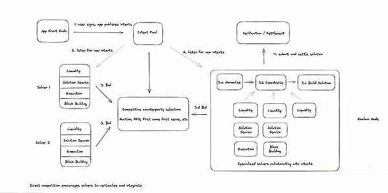 该层负责接收并实现用户的交易意图,Solver 角色在这里竞争以提供更好的用户体验,包括更快的交易时间和执行速度。