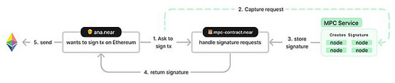 2. 以账户为中心:类似于 NEAR,构建一个全链的账户钱包,通过一个称为「链签名」的技术支持跨多种区块链协议签署和执行交易。其中核心组件是 MPC 网络,代替用户为多链交易签名。这套方案,虽然能极大的解决 UX 碎片化的问题,但是对于开发者来说,这涉及到复杂的后端实现,并且没有本质上解决流动性和状态分散。