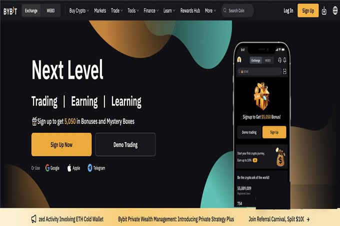 市场表现:2021年牛市期间,Bybit日交易量多次突破100亿美元之一,成为全球前五大加密交易所。提行业地位提升:2024年,Bybit交易量稳定居全球前三,交易所Binance和OKX,衍生品市场贡献突出。