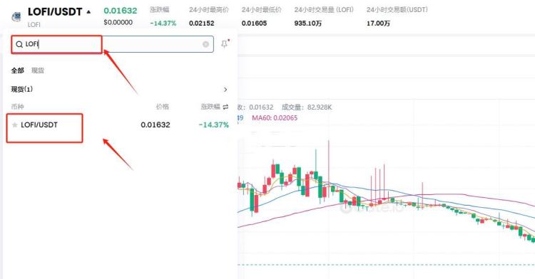 6、在进入也页面后,搜索LOFI,选择LOFI/USDT,就可以看到该币种的交易信息以及市场信息
