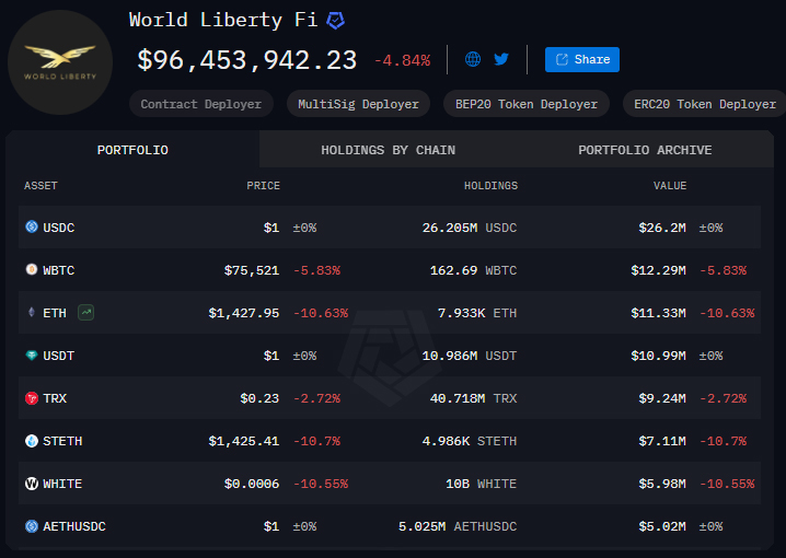 一文搞明白WLFI持仓ETH、LINK、ENA、TRX等浮亏超5000万美元