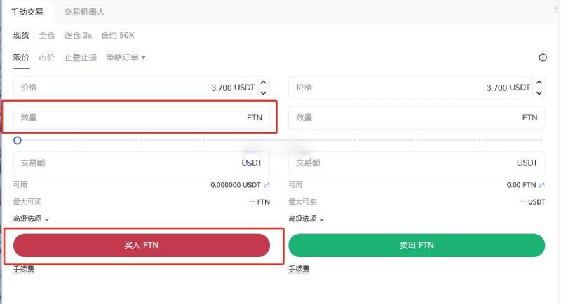 7、输入买入FTN币的数量,点击买入FTN币,就完成购买操作