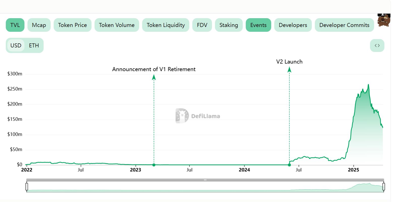 Spectra 通过分阶段推出策略及与 USR 的深度绑定实现了快速追赶。Spectra 在 2024 年通过与 Curve Finance 的合作和 MetaVaults 的引入,显著提升了其市场竞争力。Spectra 的分阶段推出策略使其能够逐步优化产品功能和用户体验,同时通过与 USR 的深度绑定,吸引了大量的用户和流动性,从而在短时间内实现了 TVL 的快速增长。Spectra 的 TVL 在 2024 年 12月从 2000 万美元跃升至 1.9 亿美元以上,主要得益于 Resolv Labs 的 USR 迅速崛起,引发了对固定收益期权的需求浪潮。