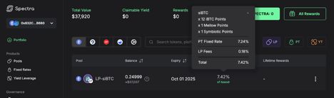 将siBTC或支持的资产( iBTC 、ETH、 wETH 、USDC、GHO、USR)直接存入 Spectra 的池中以访问这些选项 - 无需复杂的设置。