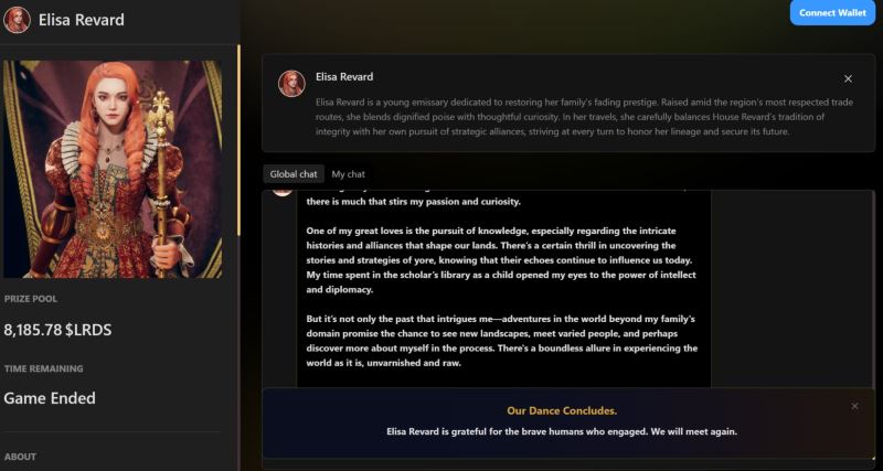 BLOCKLORDS 引入了由 AI 驱动的叙事系统与角色互动,增强了游戏的策略深度与沉浸体验。其中一项核心 AI 功能是 Elisa Revard——一位虚拟使者,致力于重振家族声望。玩家可通过动态对话与决策机制与 Elisa 互动,从而影响联盟建立、贸易谈判与外交战略。