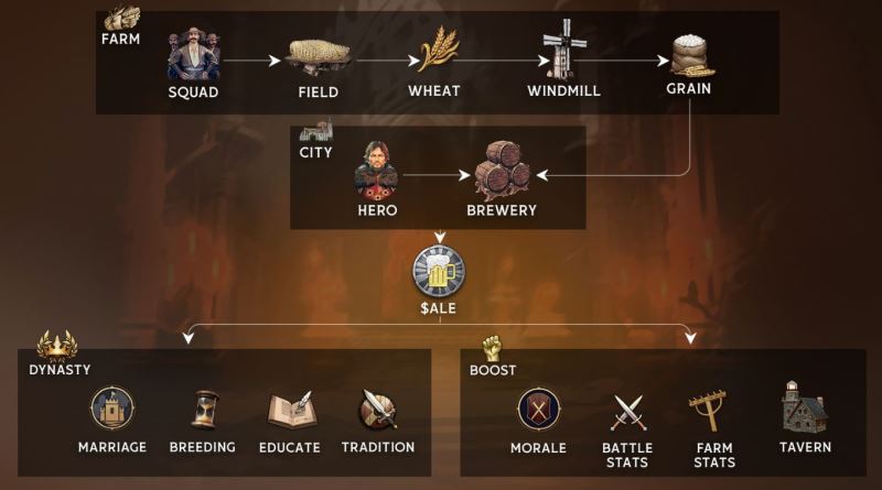 除了在生产中的作用,$ALE 还在王朝发展中发挥关键作用,在英雄结婚、生育与教育过程中会被销毁(burn)。它象征着传承、延续与对后代的投资。通过引入真实的生产机制与深层次的经济功能,$ALE 不仅是一种资源,更是一种战略资产,塑造着 BLOCKLORDS 宇宙的长期演进。