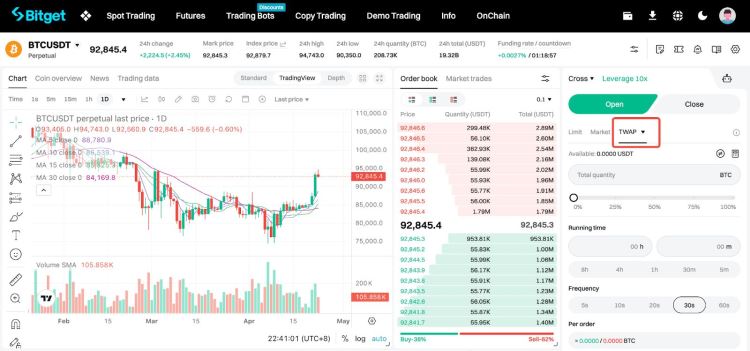Bitget 上的 TWAP 加密货币示例