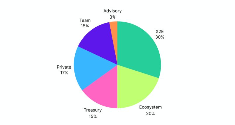 - X-to-Earn:30%,游戏内收入(Move-to-Earn,Social-to-Earn 等);63 个月内完成解锁。