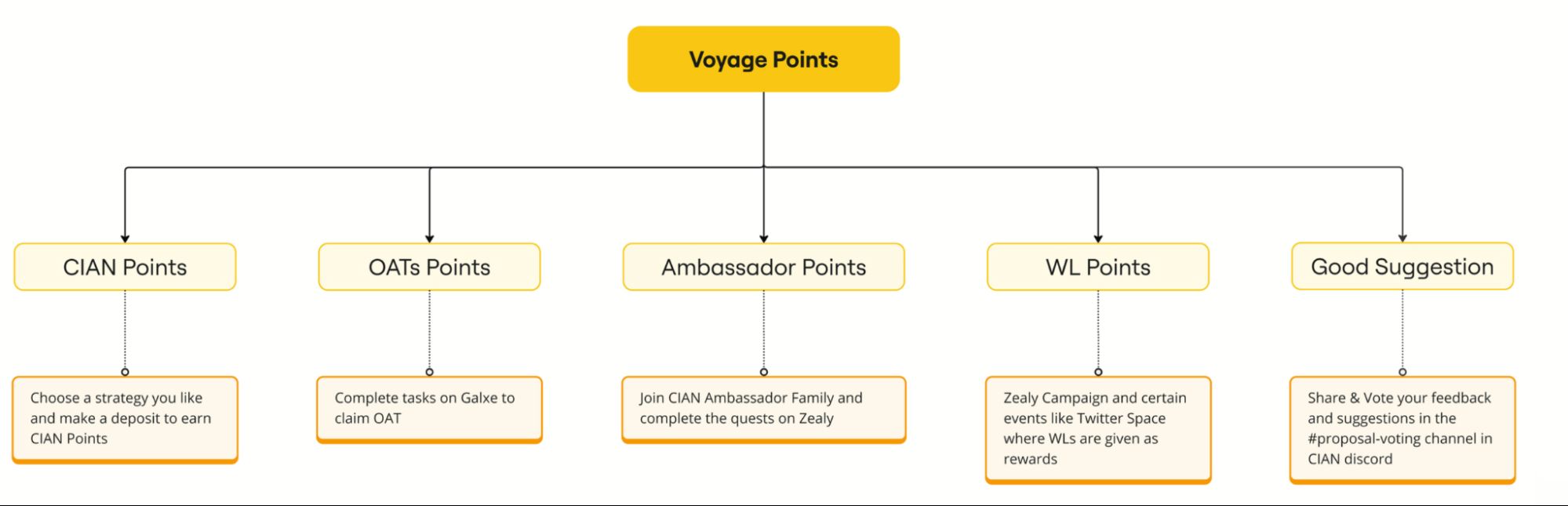 白名单积分:白名单意味着用户将有资格在发布时领取一定数量的 CIAN 代币,CIAN将在特定活动期间分发白名单名额作为奖励,例如 Twitter Spaces、社区呼吁或其他合作活动。