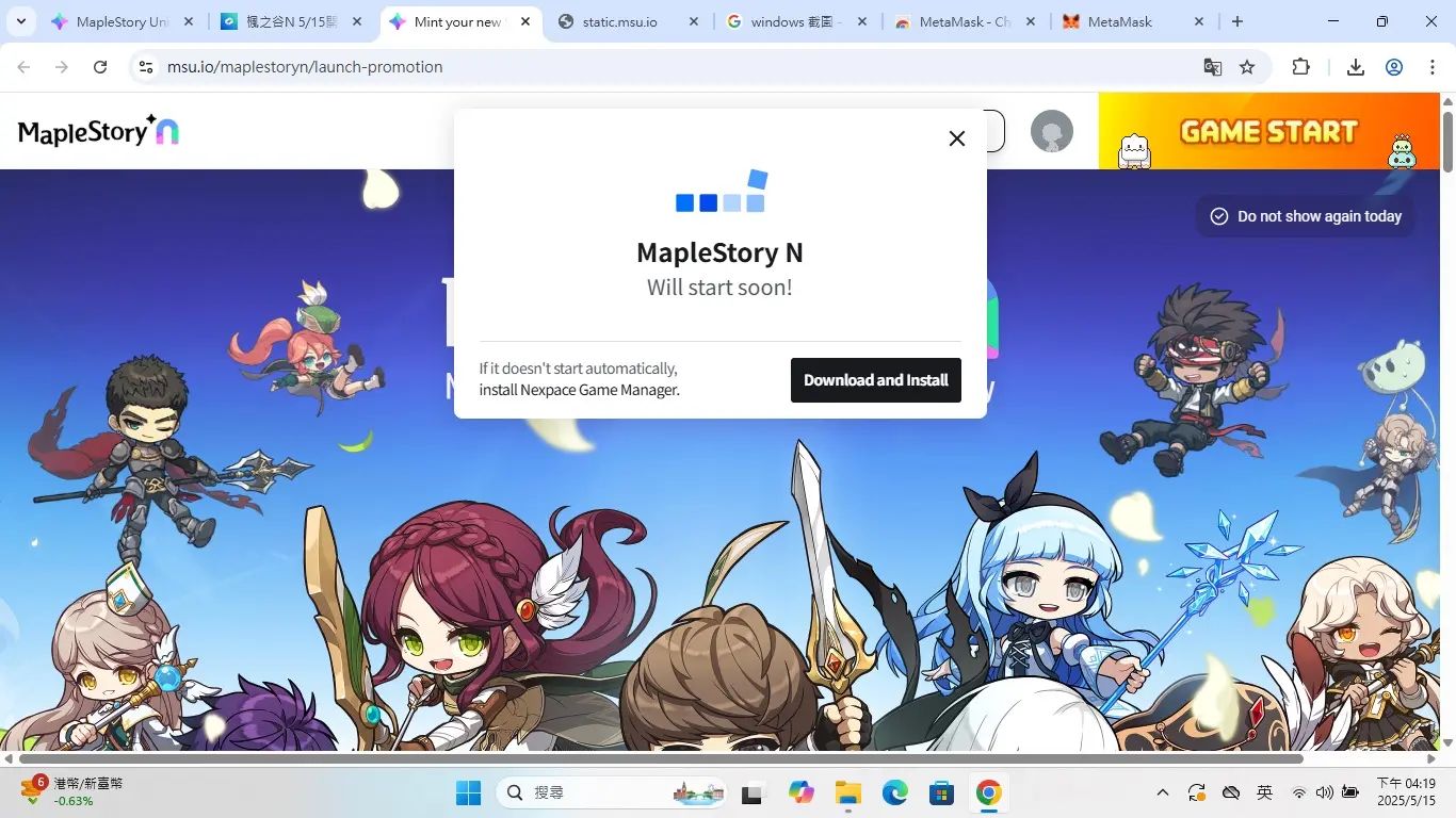 个人经验:第一次启动枫之谷 N 时可能会有点慢,尤其是电脑配置较低的朋友可能需要耐心等待。建议在下载安装过程中先去准备好狐狸钱包,这样可以节省不少时间!
