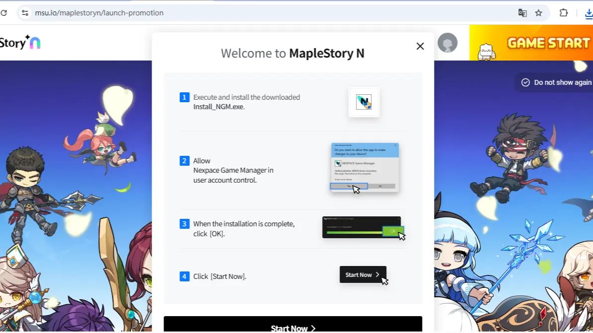 1. 前往官方网站:打开电脑浏览器,前往枫之谷 N 官方网站(msu.io)。