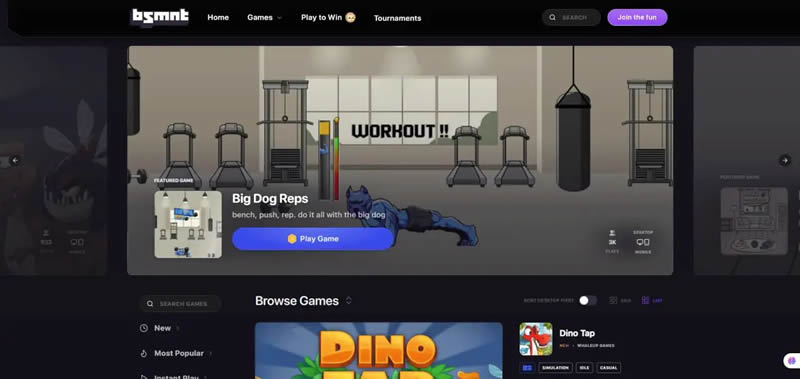 BSMNT.FUN:用户探索和畅玩链上游戏的界面平台。