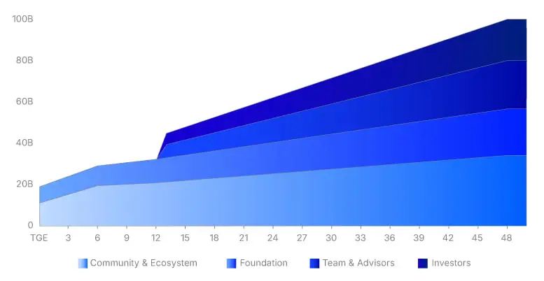 - 集团和投资者:锁定 1 年,然后每月解锁 4 年。