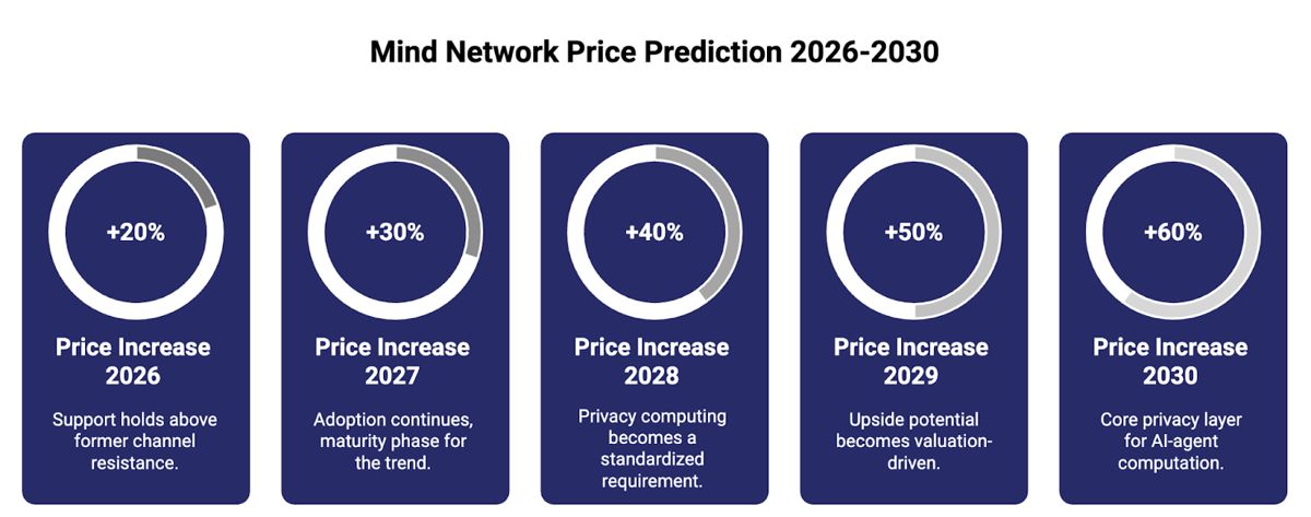 2030年的展望代表的是长期定位,而非短期预期。如果Mind Network成功确立其作为人工智能代理计算核心隐私层的地位,其价格可能会显著高于2025年的底部。