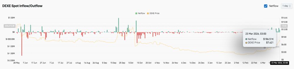 然而,近期价格走势显示,随着DEXE接近关键阻力区,短期涨势已显疲软。因此,交易员们正密切关注价格是会突破还是出现健康的回调。