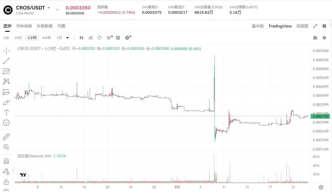 Cros World (CROS)今日价格是 $0.0003351 ,24小时交易量是 $21.86K ,Cros World (CROS) 的市值为 $134.86K,市场占有率为0.0000079%。Cros World (CROS) 价格在过去 24 小时内变动为 +2.82%。