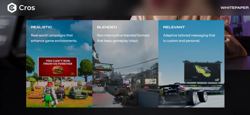 Cros 采用了一种融合和现实的方式来展示游戏内广告。来源:Cros